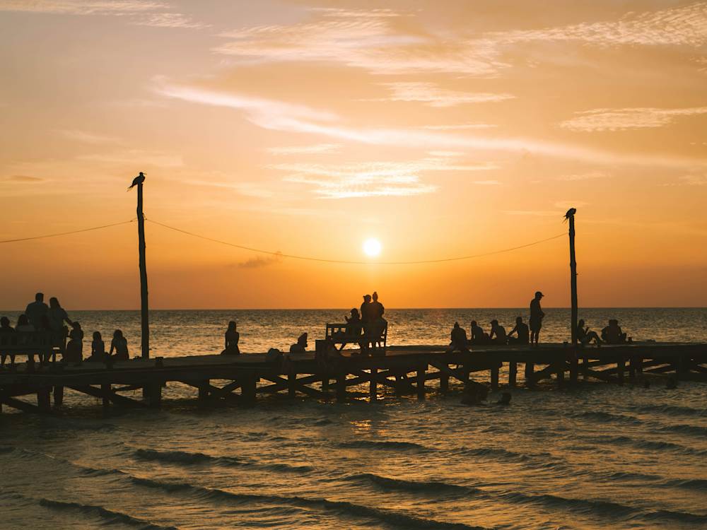Isla Holbox peut s’étendre sur une quarantaine de kilomètres inutilisés, mais la majeure partie est encore consacrée aux mangroves et aux bancs de sable intacts, où les flamants roses se rassemblent pour leur dîner aquatique. Vous trouverez la plupart de l’action regroupée dans une grille à l’extrémité ouest de l’île, près du terminal des ferries. La zone autour de la place principale, Parque Central, s’anime la nuit, lorsque les baigneurs secouent le sable de leurs membres dorés pour faire du shopping, déguster des tacos et siroter des margaritas sur le toit. À l’est, Playa Holbox est bordée de jolis clubs de plage et de restaurants élégants. À l’ouest, la côte accidentée s’étend avec des eaux scintillantes et des couchers de soleil émouvants. Vous n’avez pas besoin de choisir l’un plutôt que l’autre : la location de voiturettes de golf ou de taxis facilite la navigation sur les routes sablonneuses (et parfois marécageuses après la pluie).