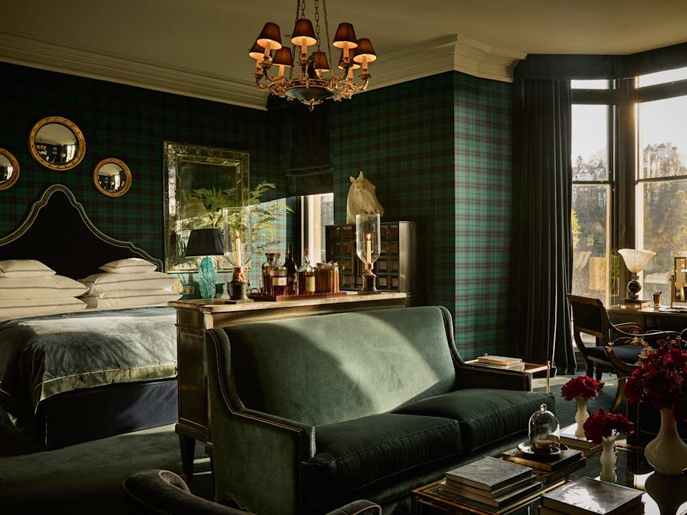 Le 100 Princes Street est une trappe spectaculaire, sombre et remplie d’antiquités dans laquelle dormir. Derrière ses lourdes portes peintes en noir, des panneaux de marbre sombre, des velours aux tons de bijoux, des globes antiques et des peintures à l’huile représentant des mers battues par les tempêtes vous attendent. Les intérieurs tranquilles démentent son emplacement sur la route la plus fréquentée d’Édimbourg – même si un coup d’œil par la fenêtre vous redirigera instantanément, révélant une vue sur le château d’Édimbourg qui éblouirait tout cinéaste au cœur gothique.