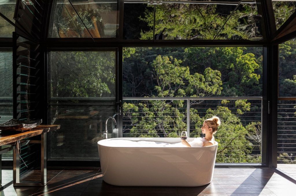 Plus à l’intérieur des terres, la région des Snowy Mountains et de la Riviera, au sud-ouest de la Nouvelle-Galles du Sud, offre refuge et tranquillité au cœur de la campagne. Allez-y doucement dans le charmant cottage de Kallarroo Farmstay doté de 400 hectares de terrain et d’un séduisant bain à remous au feu de bois où vos ennuis disparaîtront. Le parc national de Kosciuszko abrite le Mill Cabin hors réseau, qui dispose d’une baignoire extérieure en cèdre d’inspiration japonaise et constitue l’hébergement idéal pour l’intimité et les soins personnels. Juste à l’extérieur de Gundagai, vous trouverez trois écolodges offrant une vue panoramique sur les superbes collines, chacun doté d’un bain à remous privé au feu de bois, sur le magnifique domaine de Kimo. Dernier point, mais non le moindre, le premier hébergement certifié Dark Sky d’Australie est le Kestrel Nest Eco Hut, primé, qui offre des possibilités inégalées d’observation des étoiles depuis un bain extérieur accueillant au cours d’une expérience luxueuse hors réseau.